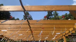 みなさん参拝されるところを拝殿といい、全体的には社殿といいます。神社の社殿にはさまざまな形式があります。今回はその違いを見てみましょう。一般的に家というのは本を開いて伏せたような山の形で「切妻造(きりつまづくり)」といいます。屋根の上の部分…